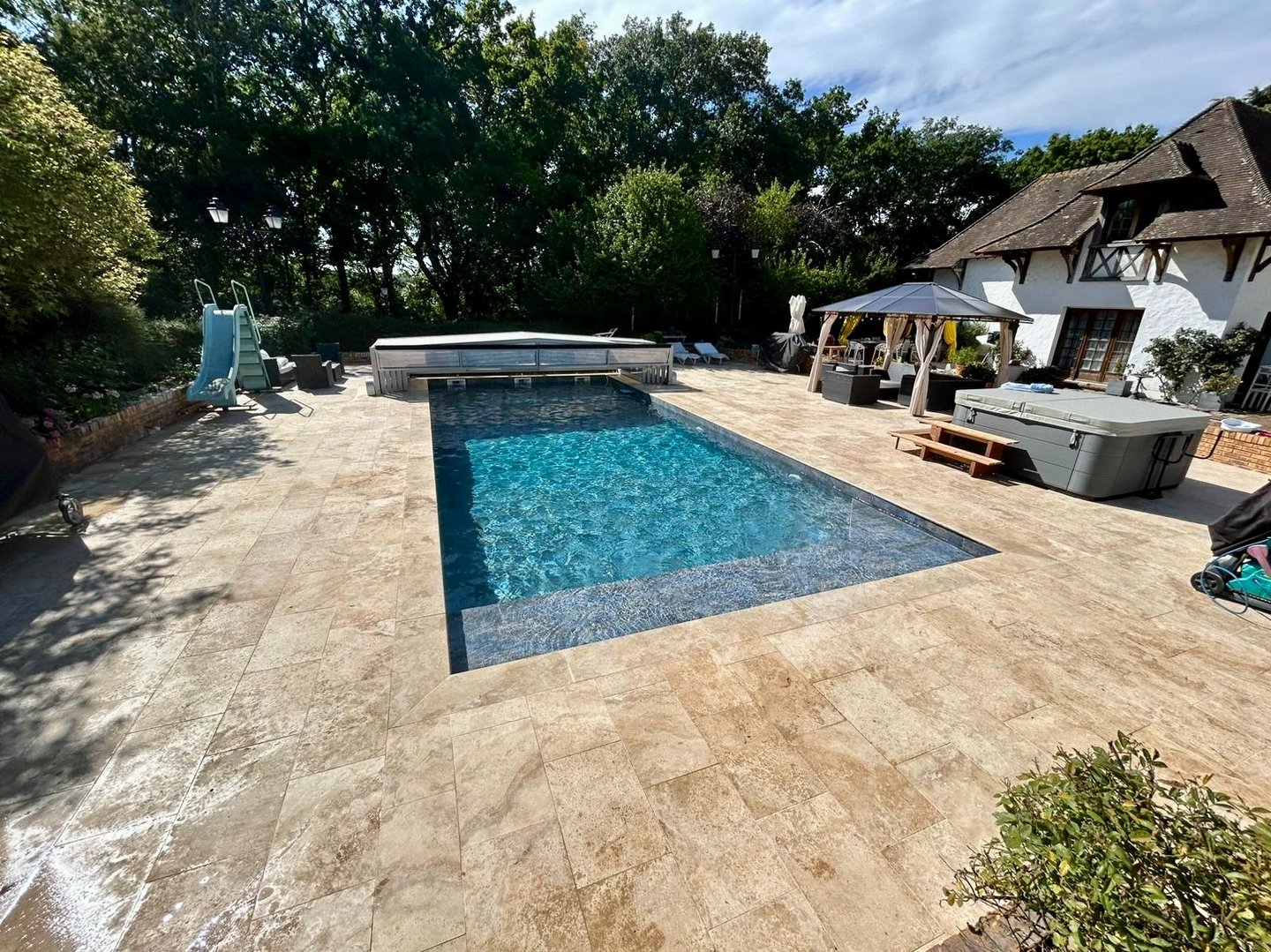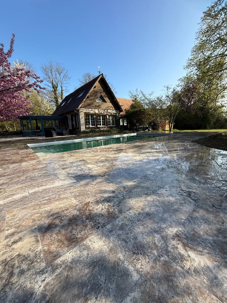 Valorisez vos espaces extérieurs : pavage, dallage, allées, parking, terrasse en travertin ou pierre naturelle... Des aménagements résistants et esthétiques, adaptés à votre quotidien.
